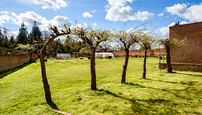 A large open plan space with connecting offices and views into the stunning Victorian walled garden.